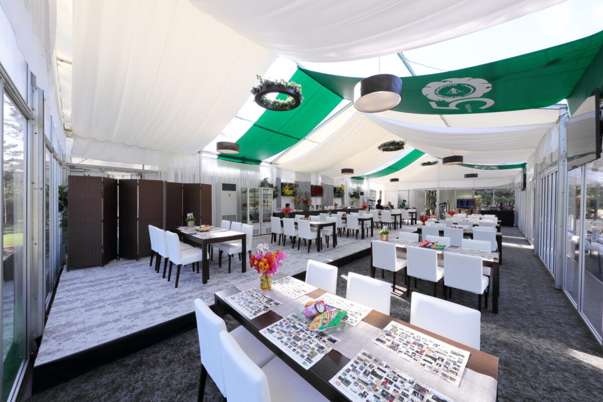 国内屈指のゴルフトーナメント「アース・モンダミンカップ」では、2階建てテント「PALAS」がVIPラウンジとして活躍しました。