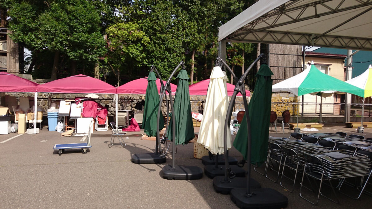 強風・雨天でも使用可能な構造ですが、安全を最優先とし、状況に応じて短時間での撤去を行う場合もあります。ご安心いただけるよう、事前に担当者から詳細をご案内させていただいております。