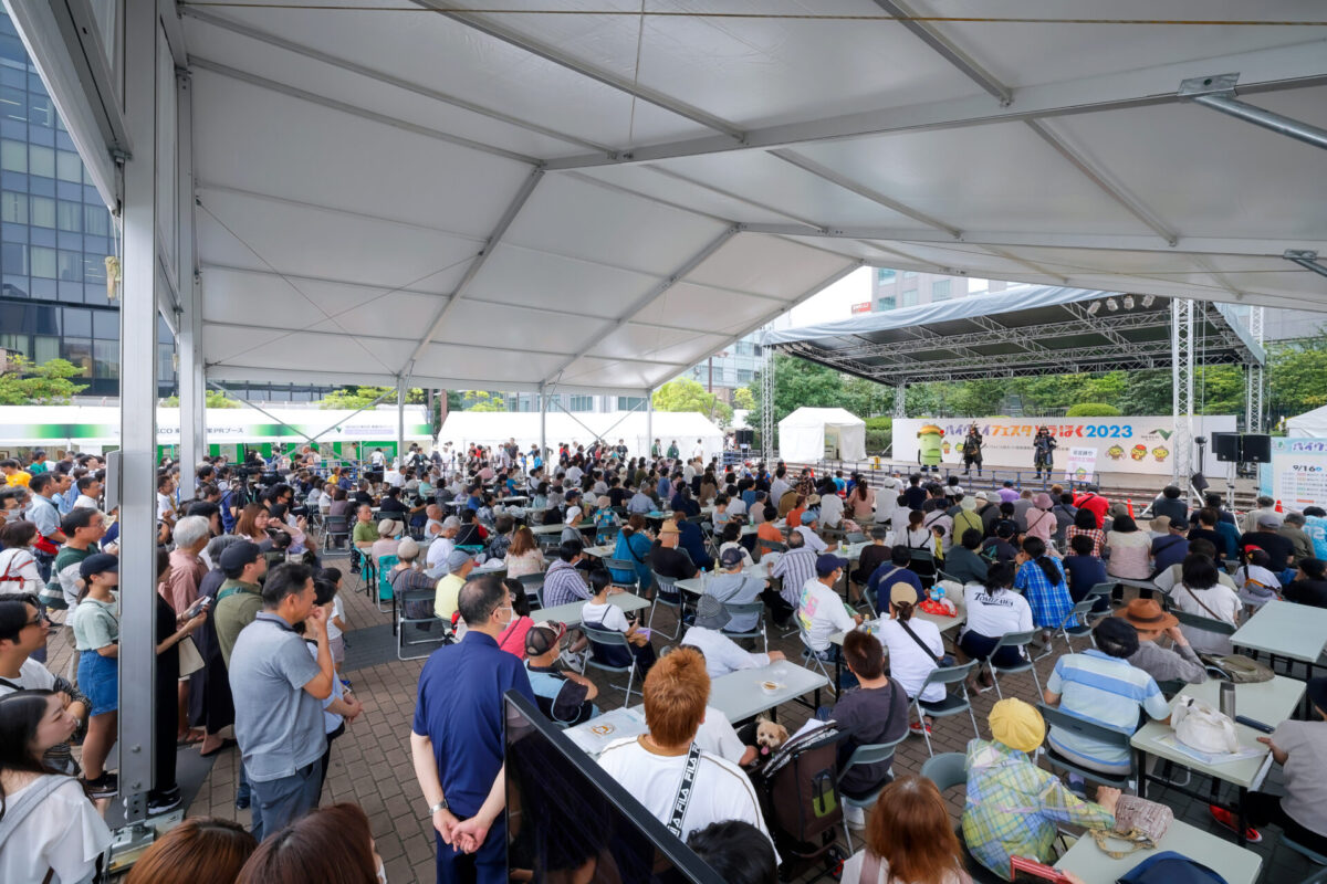大型テントがあれば、急な雨や日差し、風の影響を気にせずに、来場者も機材も安心。屋外イベントを予定どおり楽しむことができます。