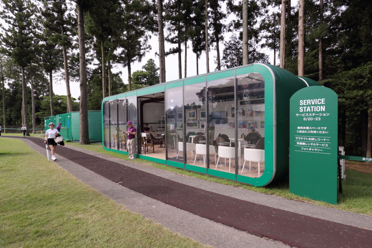2階建ての構造を活かし、スペースが限られた敷地での展示会や、上階からの眺望を活かしたスポーツイベントのホスピタリティスペースに適しています。バルコニーも設置できるため、ゴルフトーナメントでのVIP専用ラウンジとして使用した実績もあります。