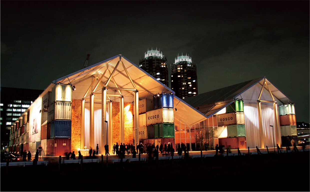 Designed by architect Shigeru Ban, it was created with the concept of a “moving” building, and its construction was simplified using a large number of locally procured containers along with paper tubes.