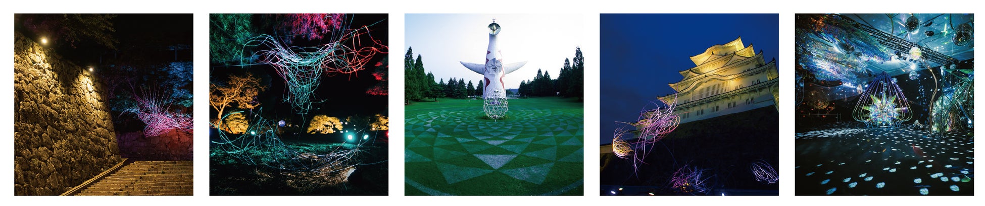 当社では、ELEMENTSの前身となる「光のクリエイティブによる空間演出」の事業に2000年代後半から取り組んでおり、西日本を中心に観光資源を活かしての実績を積み重ねてきました。2010年代以降、デジタルアートが台頭してVR・AR・インスタレーションという言葉が一般的になり画一化されていくなかで、一貫してデジタルとアナログの中間をとるような造形の美しさと、地域に寄り添った固有の表現を追求した空間演出を続けています。