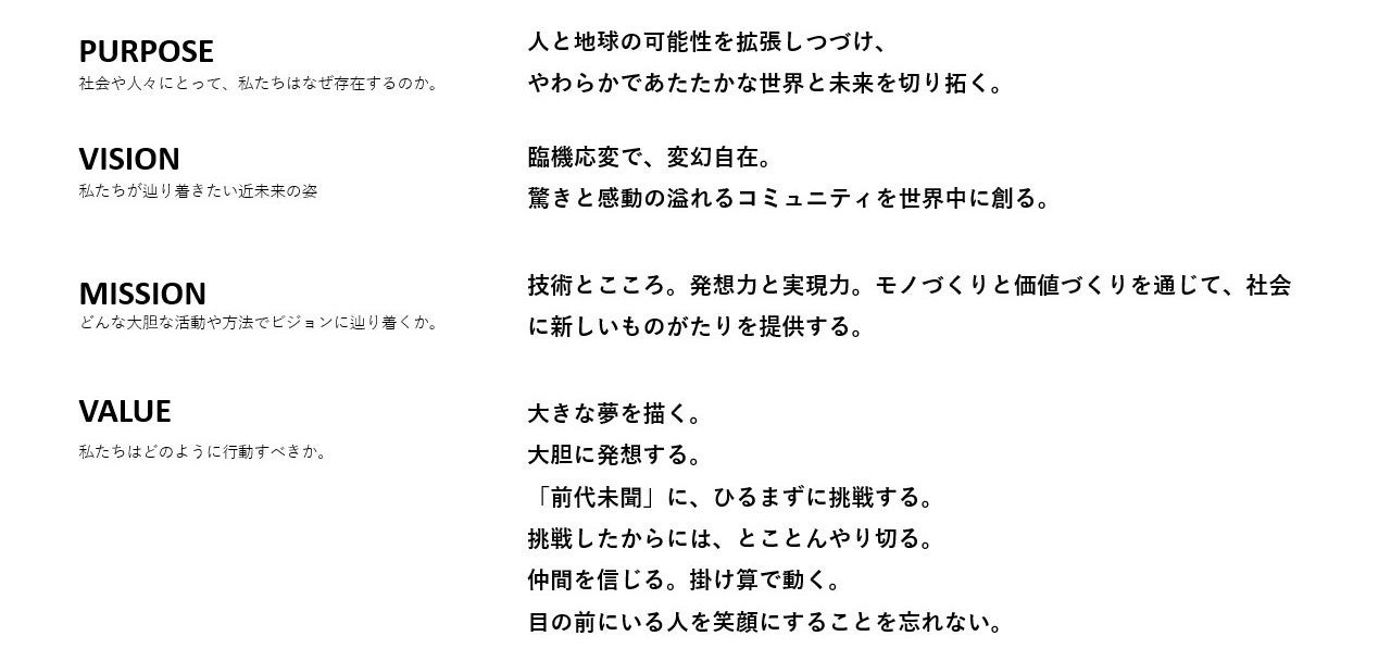 グループ理念は創業100周年となった2022年から策定を開始しました。グループの理念をはじめ、「社会や人々にとって私たちがなぜ存在するのか。」を表したパーパスやビジョン、ミッション、バリューを作りました。
