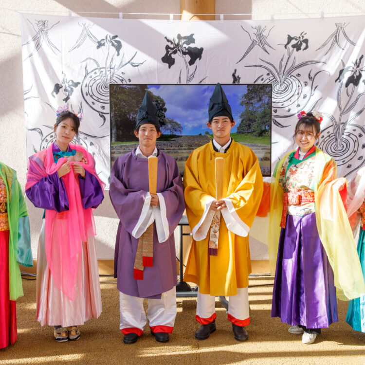 史跡に復元された覆屋を仮設養生にてお食事を楽しめる場として設営し、地元出身アーティストの作品を装飾の一部に利用させていただいたり、地元団体様のご協力により万葉衣装をスタッフユニフォームとして使用させていただくことで、「多賀城らしい」演出ができたと感じています。