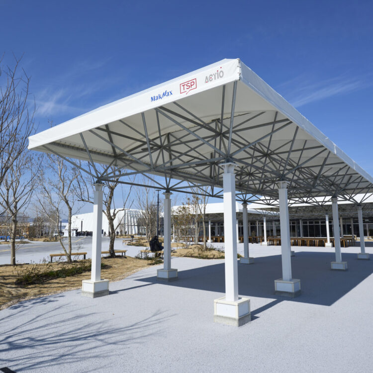 初代のノマディック美術館は2005年3月、ニューヨークのハドソンリバーパークに建てられ、2006年3月、カリフォルニア州サンタモニカに移築、2007年3月には東京のお台場に移築。東京では、100mの平行な2本のギャラリーの間にニューヨークではなかったシネマとミュージアムショップが加わり、面積が4200㎡から 5300㎡と広がりました。唯一基礎の設計のみ各地の法規の違いで毎回新たに設計し許可を取る必要があるが、建設期間はいずれも2ヶ月間で完了しました。