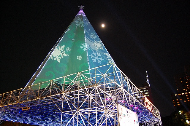 大噴水を囲う内照式テントの『幻想的な明り』と外側に設置した『イルミネーションの光』が壮大な空間を創り出しました。