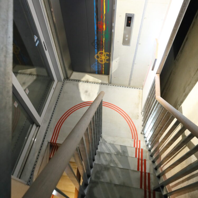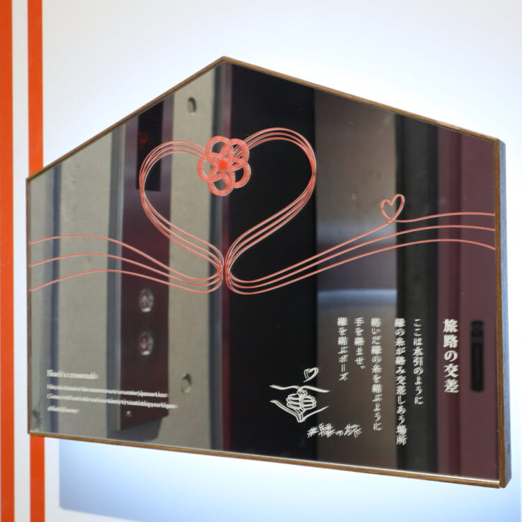 「入口から屋上に誘引する仕掛けを作ってほしい」というご要望を頂き、屋上に誘導するまでのストーリーや、屋上での最後の体験を作る必要があると考えました。当社からは水引をモチーフとして、「水引から辿りついた先で屋上の鐘を鳴らす」という体験ができる仕組みを作りました。