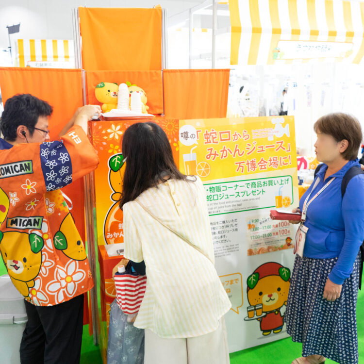 TSP太陽は、出店者調整をはじめ、当日の整列誘導などの運営業務を担当しました。ブース中央では、グルメ・物販コーナーで商品をご購入いただいた方向けに、蛇口から出るみかんジュースのプレゼント企画を実施。時間を区切ってそれぞれ先着100名限定で行いましたが、予想以上の盛況ですぐに売り切れてしまう人気ぶりでした。