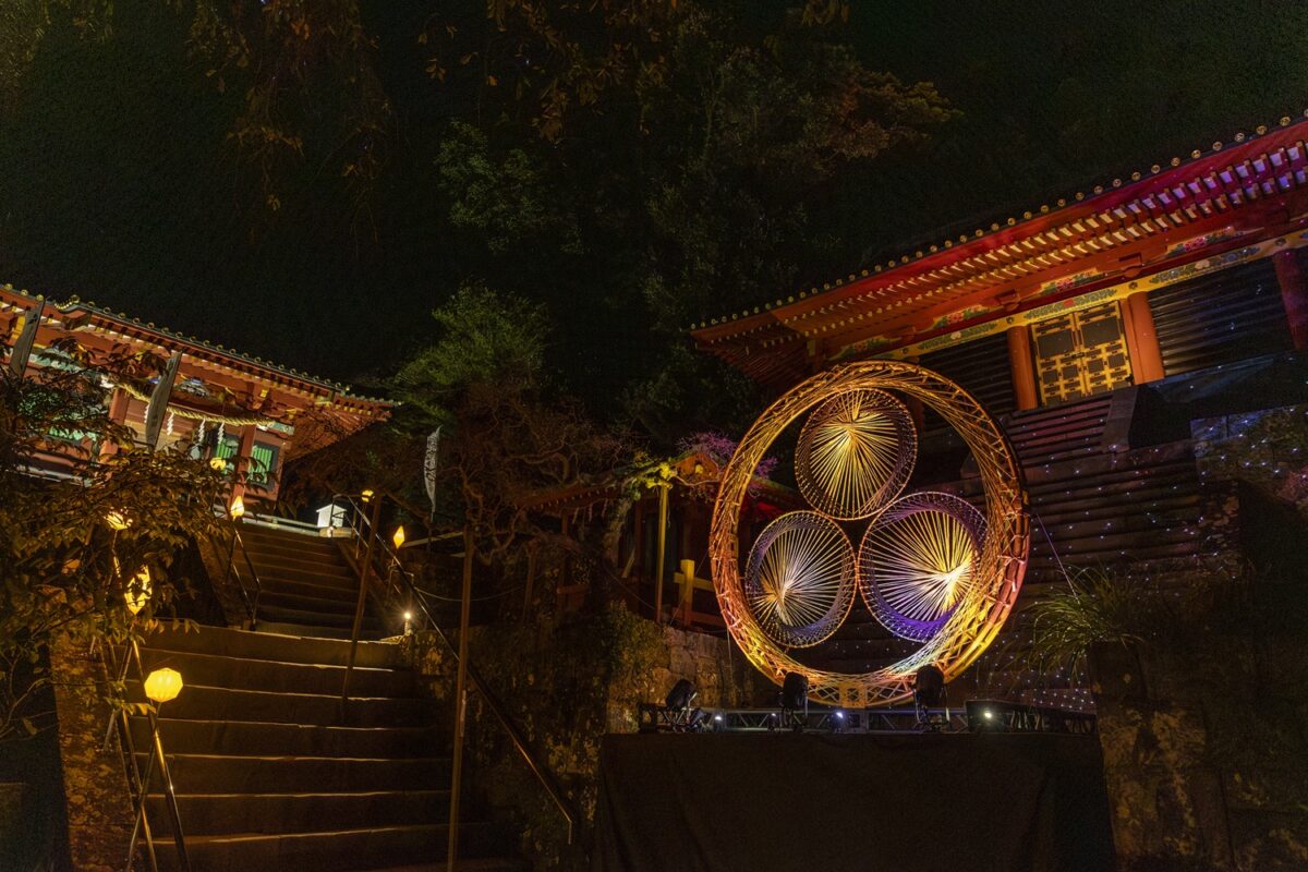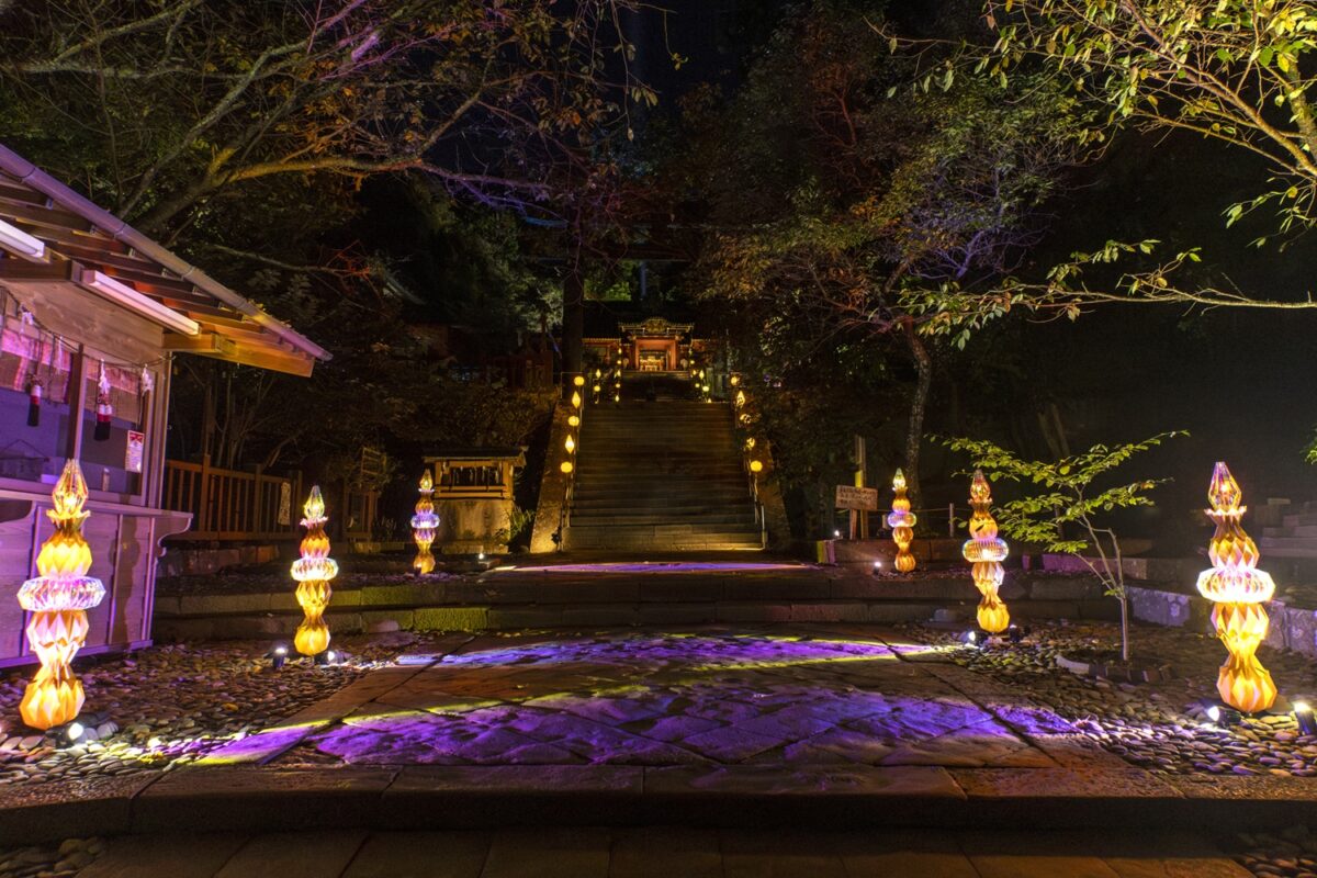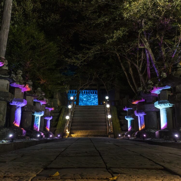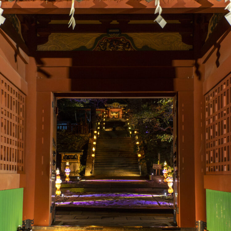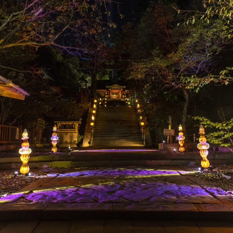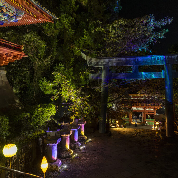 本イベントは久能山東照宮の境内全域において、通常は立ち入ることのできない夜間の特別拝観に加え、折り紙をテーマにした優美なライトアップにより、日常を忘れさせる輝きを演出しました。ライトアップの空間デザインには、当社のクリエイティブブランド「ELEMENTS」がプロデュースを手掛け、アーティスト「YouRuMaru」が創造する幻想的な空間演出を作り上げました。