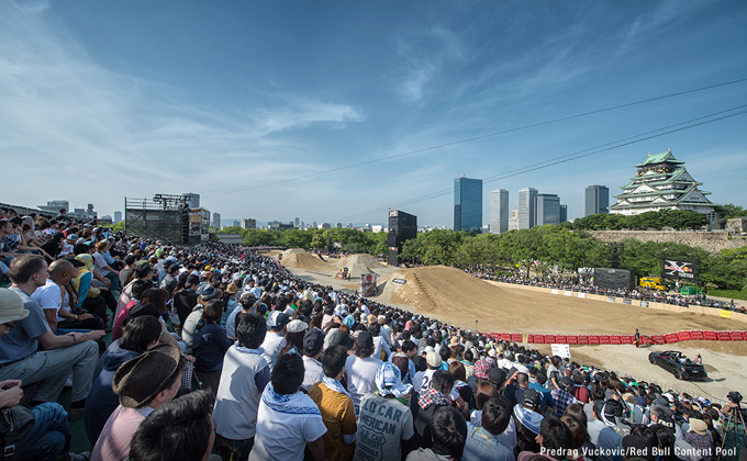 大阪のシンボルとして国内外を問わず有名な観光地”大阪城”をバックに、世界最高峰のフリースタイル・モトクロス(FMX)大会『Red Bull X-Fighters World Tour(レッドブル・エックスファイターズ・ワールドツアー)』 2014年シーズンの第2戦目を大阪城公園の西の丸庭園にて再び開催!!